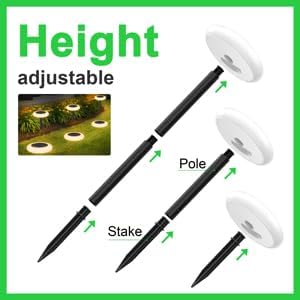- 【Waterproof and Easy to Install】IP65 waterproof, can withstand any harsh environment. Colorful solar lights are environmentally friendly and save money. No wires are required. They charge during the day and turn on automatically at night. You can just use a stake to insert into the ground (install it closer to the ground) or use a pole-connected stake to insert it into the ground (install it 1 meter from the ground feet high).