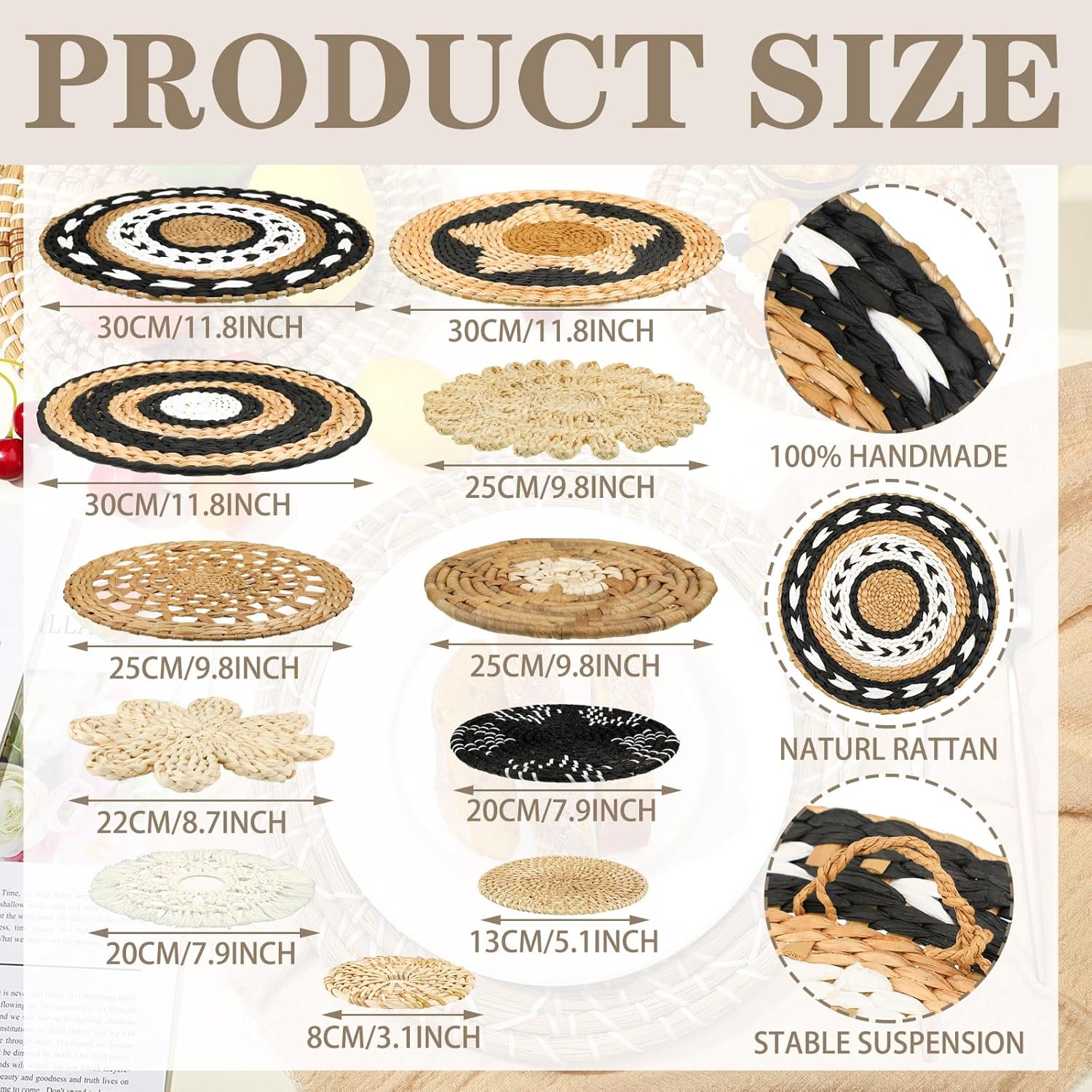 - Wide Range of Applications: boho basket wall decor set as placemats, or as decorative baskets to store toys and accessories, the rustic basket wall art is suitable for many occasions, such as hotels, restaurants, living rooms, bedrooms, schools, stores, offices, dorms, shops, Christmas and more, bringing you an elegant and classic feeling