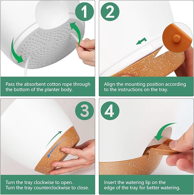 - SUN-E Self Watering Planter, precisely brings you such a tranquil oasis.Not just a tool for nurturing plants,but also a manifestation of the aesthetics of life.The planters seamlessly integrate the beauty of nature with modern design elements.The varying sizes offer flexibility in arranging plants,the contemporary finish adds a touch of sophistication to any space.With their optimal drainage and watering system,the planters provide the ideal environment for your beloved indoor plants to thrive.