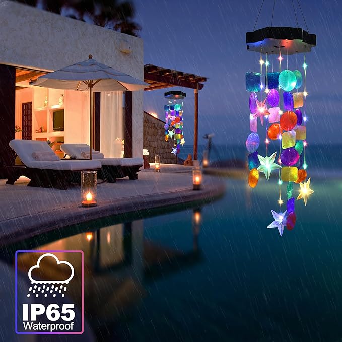 - 🎐Waterproof Solar Lights for Outdoor Decor: With IP65 waterproof and unique rain-proof and moisture-proof design, the solar outdoor lights can be hung indoors and outdoors as a lovely day and night decoration. You can enjoy the sight of the colorful shell in the daytime and glowing shell at night.