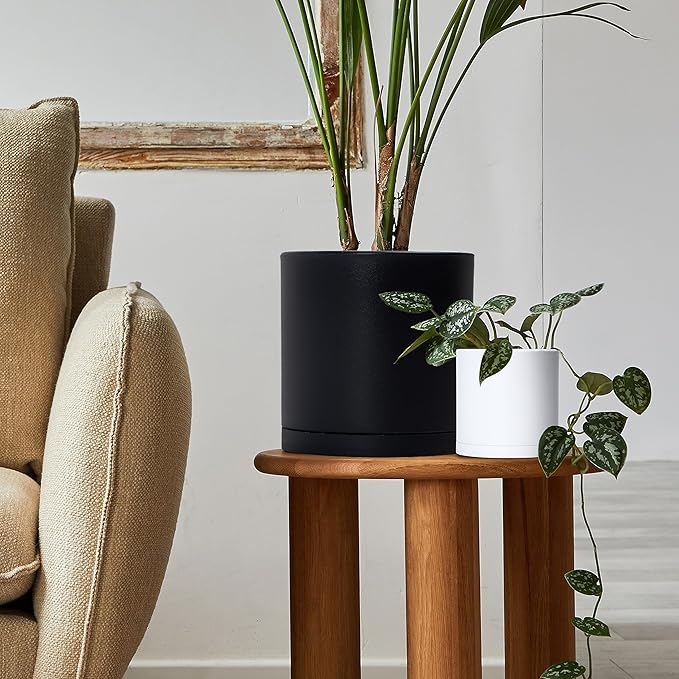 - Seamless & Minimalist Design: Modern straight cylinder shaped planter pots with drainage hole and seamless detachable saucer.