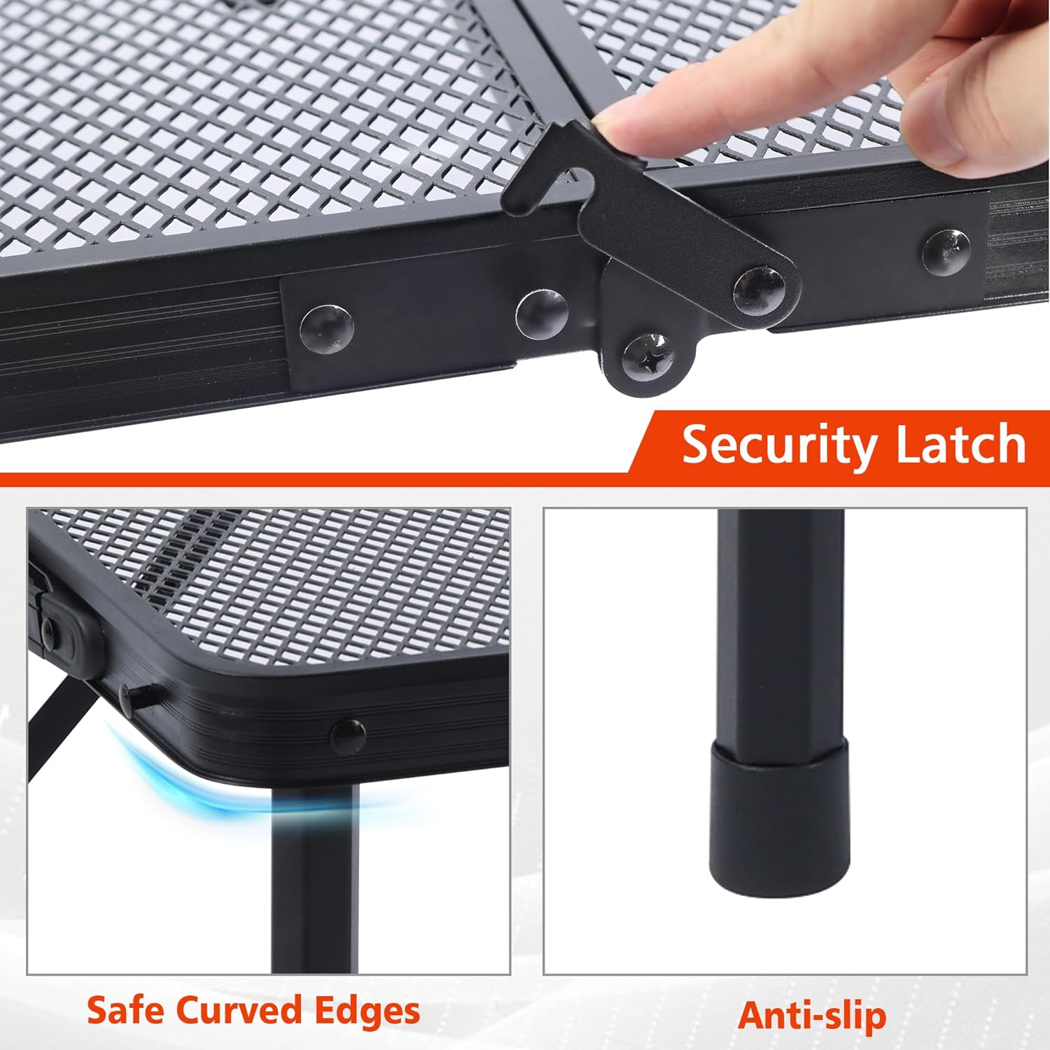 Camping Table, 2x1.3 FT Portable Folding Grill Table, Lightweight Height Adjustable Metal Tables with Mesh Desktop and Mesh Bag, Outdoor Tables for Camping, Picnic, Beach and BBQ, Black