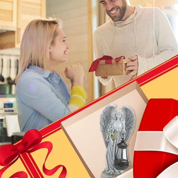 - 【Build your Modern Garden】Our gray angel stands at 13.2 in making them the perfect size to add a touch of whimsy to any outdoor space. simulate watering effect, This yard solar angel statue brings color and life to your home as it shines in the sunlight and light up in your garden at night, which can cerate an environment full of whimsy and magic!