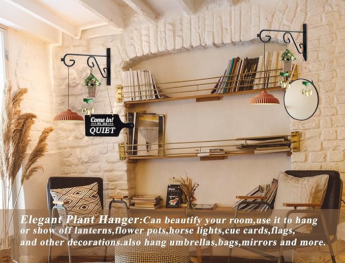 - Easy To Install:Each plant hook measures 12" X 7",set of 4.Suitable for both outdoor and indoor use,equipped with along with self-tapping screws and expansion screws,easily bite into wood or walls,making it more convenient and quick to use.