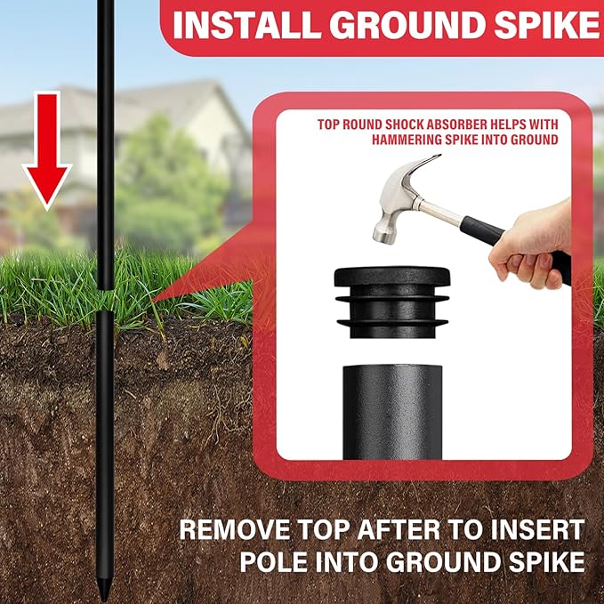 - 【Black PVC Ground Spike】The black PVC ground spike works as the base for the flag pole. The spike makes sure the flag pole stays upright and doesn't wobble or lean. Remember to remove the shock absorber before inserting the pole.