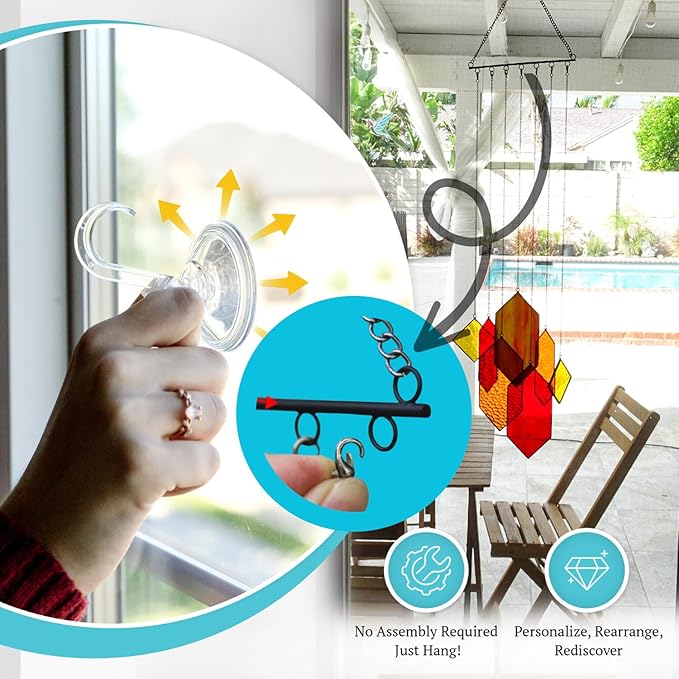 - π₯° πππππππ ππππππππ: Surround yourself in window art glass suncatcher chimes and enjoy the dance between dark and light as sunrise moves to sunset. From Motherβs day gifts, birthday gifts for her, Christmas gifts for grandma or just for you, a stained glass light catcher is 100% serenity.