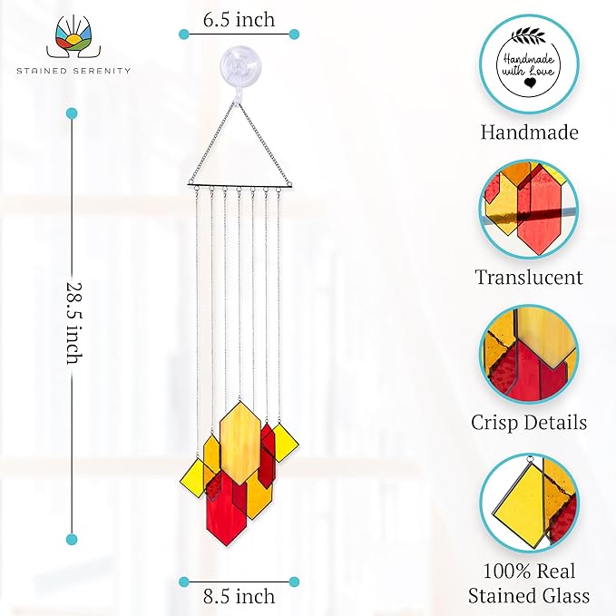 - π©βπ¨ πππππππ ππππππππ: The light of the day wanders, allowing your mind to gently wander among the dancing hues of Stained Serenity Stained Glass Wall Art for Windows. Handmade, our real stained glass wind chime hanging is available in Sunset Glow Stained Glass Art Set. All preassembled and reconfigurable!