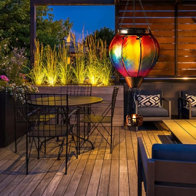 - 【Perfect Giift】Hot air balloon has rich meanings, which represents courage, hopes, dreams, romantic love, so glass hot air balloon solar lantern is a perfect giift for your friends and family.Hanging solar lights with flickering flame are great Women's Day decorations. Hot air balloon solar lantern is a good Women's Day giift.