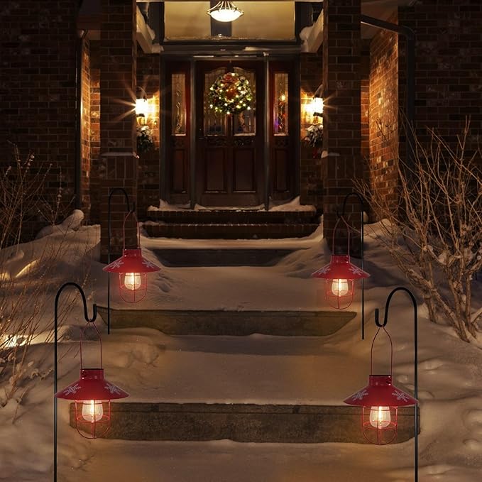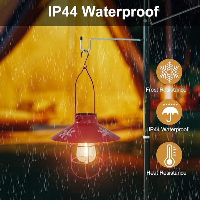 - 【SPECIAL FOR CHRISTMAS DECOR】 -- The brim of the lantern is adorned with snowflakes, red solar hanging lantern emits a warm white light and creates a romantic holiday space. NOTE: ONLY FOR DECORATION, NOT FOR ILLUMINATION PURPOSES