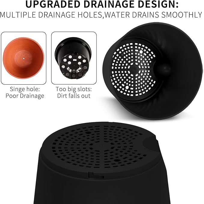- 【Modern Simple Design】Pure black plant pot and matte finishing exterior, bringing out a modern minimalistic styled. the round planter pots are perfect for all medium to large-sized indoor house plants and herb spice gardens.