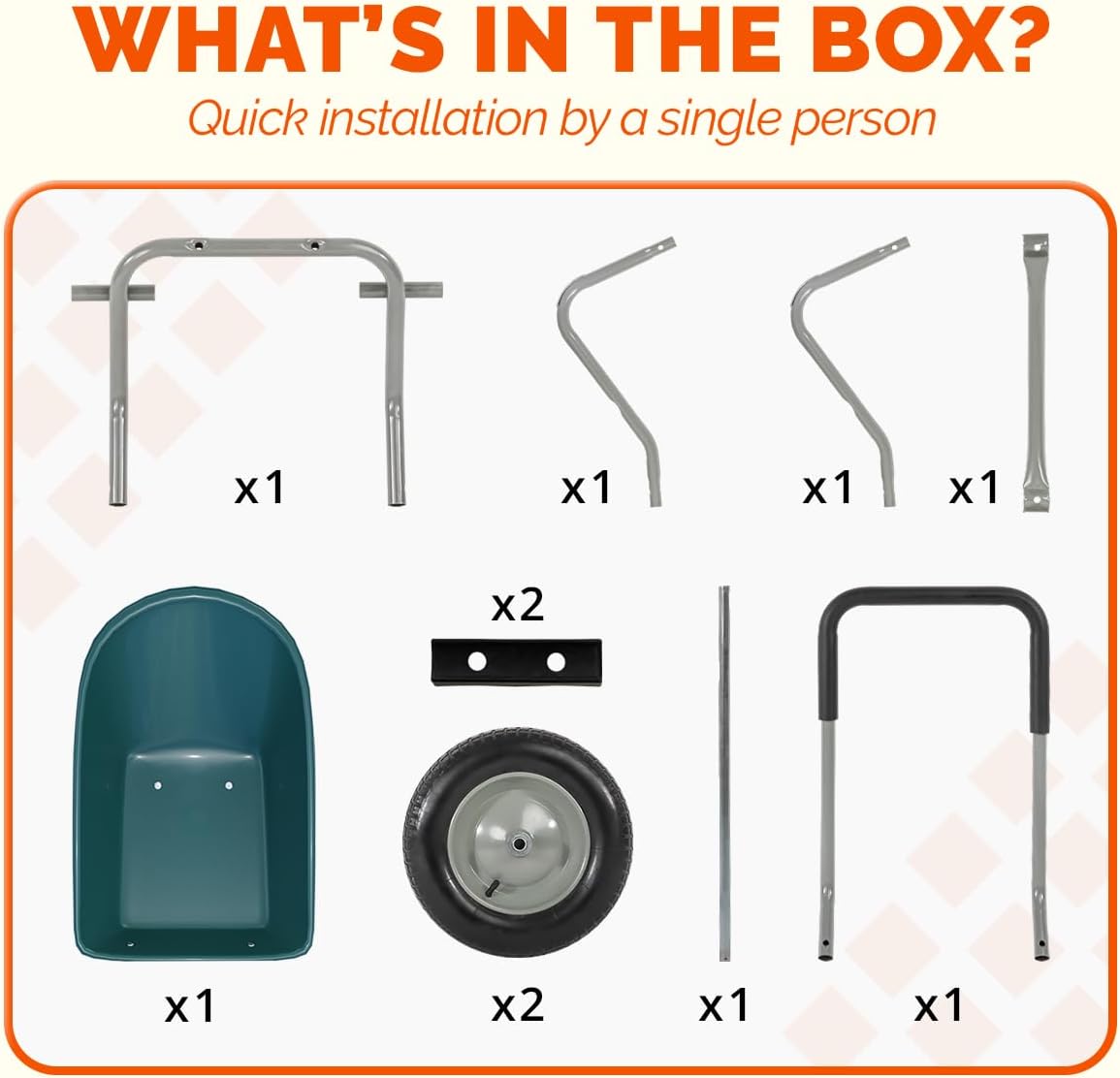 - DURABLE MATERIALS: This wheel barrel pairs a durable combination of a tough PE tray with a sturdy stylish powder coated steel frame, making it not only functional but also visually stunning