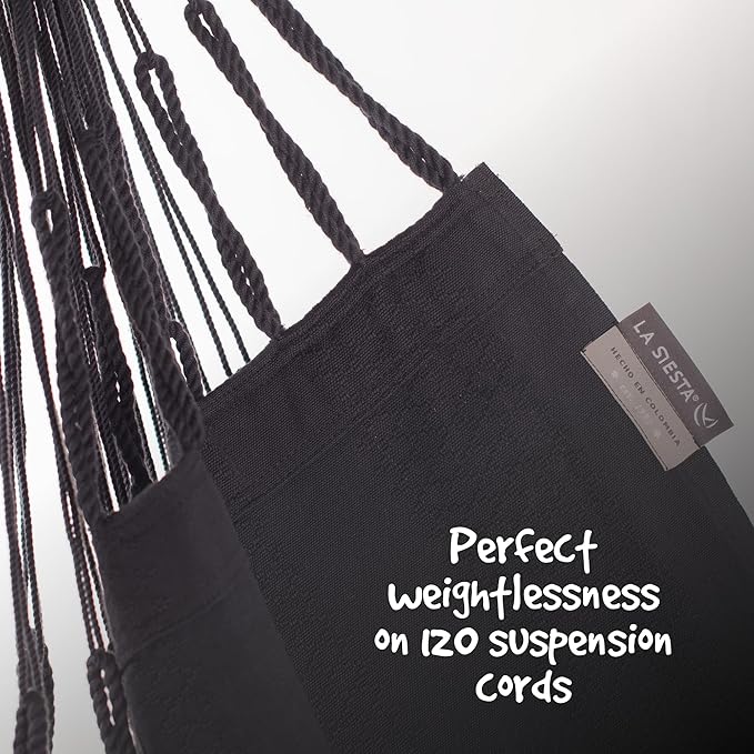 LA SIESTA - XL King Habana Cotton Hammock & Romano Steel Stand - Indoor Outdoor Hanging Chair Swing for Bedroom Porch Balcony - Boho Hanging Chair - Onyx
