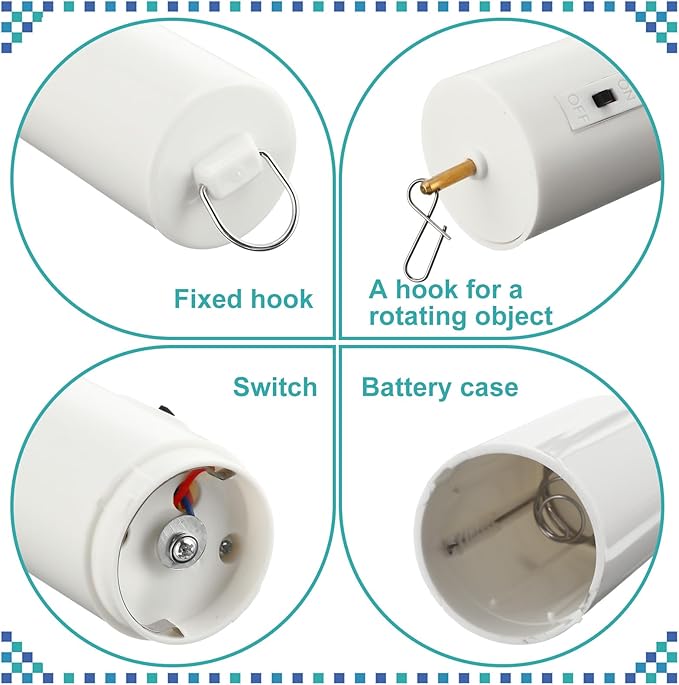 - Widely Applicable: our hanging rotating motor is designed to fit most wind spinners with ease; Whether you're using a metal, wood, or glass spinner, you can count on our white rotating motor to provide reliable and effortless rotation; Helping you decorate your garden, lawn, porch and other places you need, also can be applied to hang Halloween and Christmas decorations