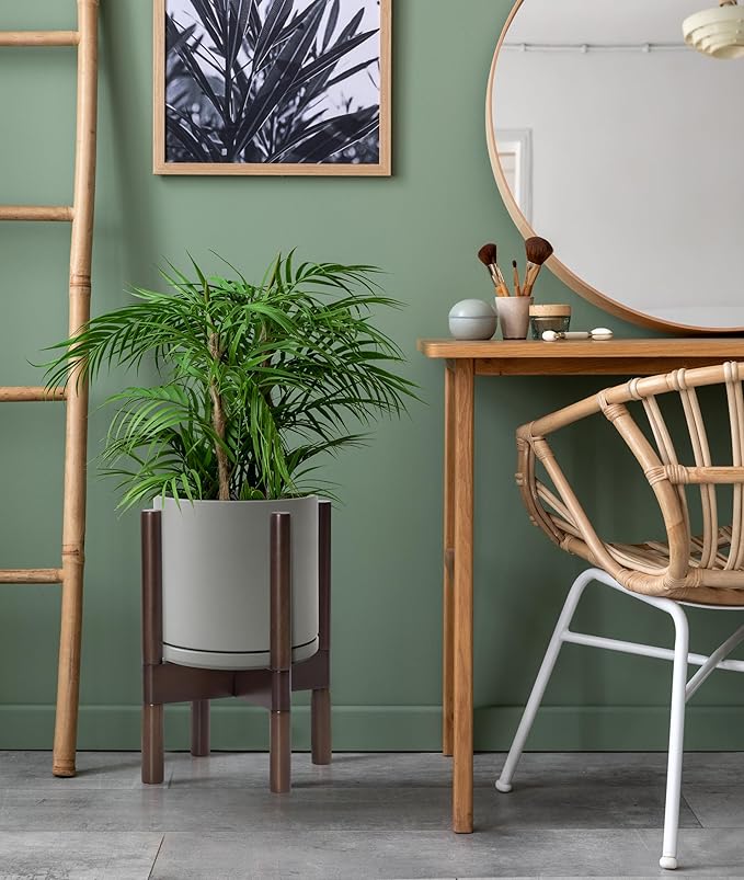 - A Complete Set: Mid-century ceramic planter, combined with a sculptural, solid wood stand that match perfectly together and looks great in anywhere.