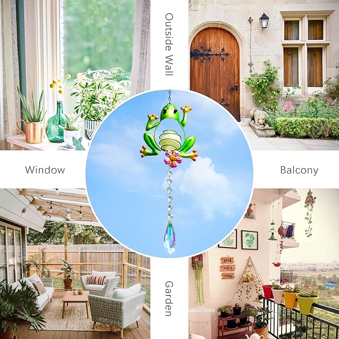 - Eye-Catching Design: The Metal Frog Suncatcher features a unique and intricately designed frog shape, premium quality metal and crystal,containing a fluorescent endothermic shiny ball, it fluoresces at night when the sun shines during the day,creating a delightful focal point wherever it is hung.