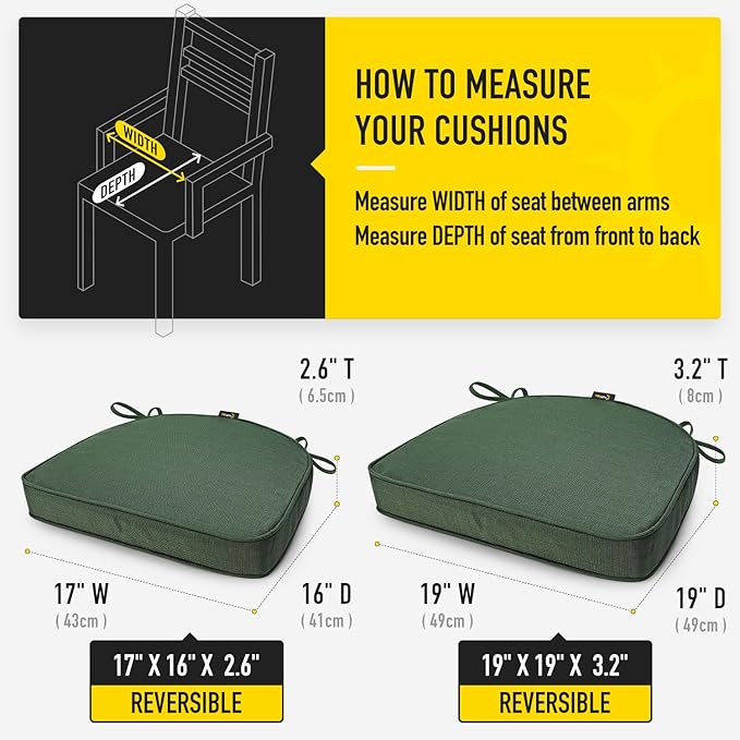 - 【Stain-, Water-Resistant Finish】FadeShield is inherently stain resistant, since it won’t absorb much water, it also add a stain-resistant coating for increased protection. 80% water resistant (not entirely waterproof, quick dry when separately from the cushion foam). Easy to care, just spot clean with mild soap & water and air dry. Perfect for indoor furniture, kitchen, dining room, office use, outdoor patio, porch, garden chairs, car seat and wheelchair.