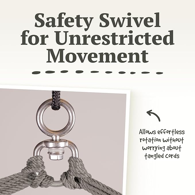 - SEAMLESS SWINGING EXPERIENCE: Embrace unrestricted movement with the integrated 360° safety swivel. Pivot effortlessly in any direction – a hanging hammock chair for indoor, offering a SEAMLESS SWINGING EXPERIENCE for indoor lounging.