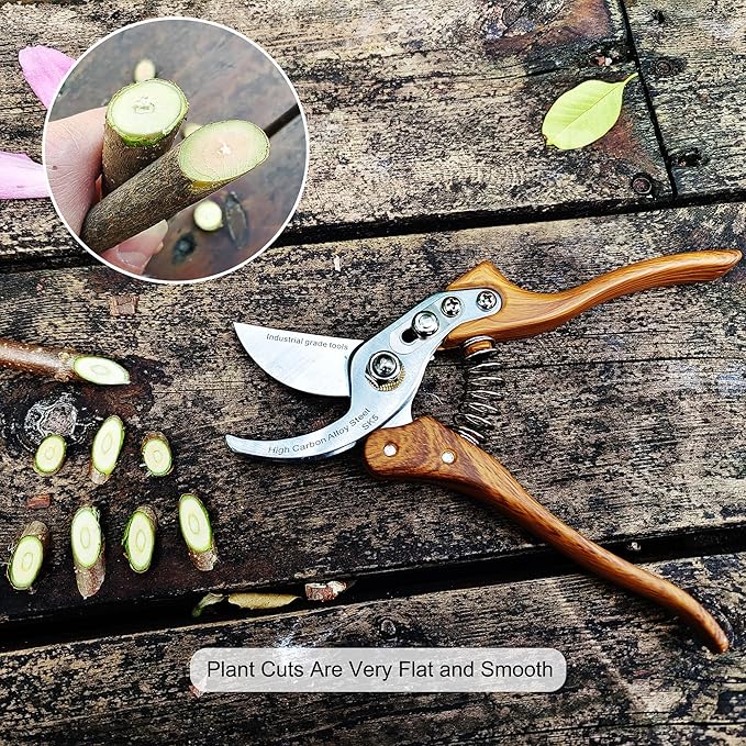 - [ POWERFUL CUTTING ABILITY ] - The garden pruning shears are made of Japanese stainless steel (SK5 steel) which can easily trim branches with a diameter of 1 inch, heavy-duty and sharp.