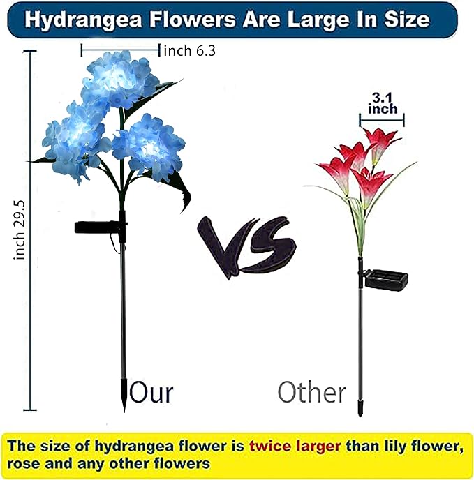 RAYLIDA Solar Lights Outdoor Decorative - 3 Pack Hydrangea Solar Garden Stake Lights Waterproof,Two Lightning Modes & Enlarged Solar Panel (Blue)