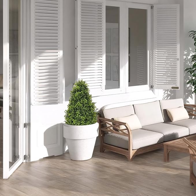- Lifelike & Elegant Design - Realistic faux plants outdoor with lifelike boxwood foliage, multi-textured leaves, and a natural-looking faux bark trunk. The rich green tones of this artificial topiary for outdoors and indoors bring charm and elegance to any setting
