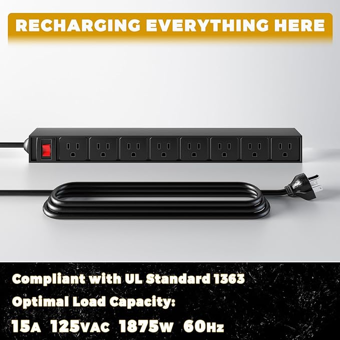 - Efficient Storage: The KAFAHOM Electric Tool Rack is designed with three tiers and eight dedicated slots to efficiently store your electric tools. The top tier features a built-in charging station, enabling direct charging while tools are stored.The power cord is 7 FT long 14AWG,and the charging station is 15A 125VAC 1875W 60Hz.