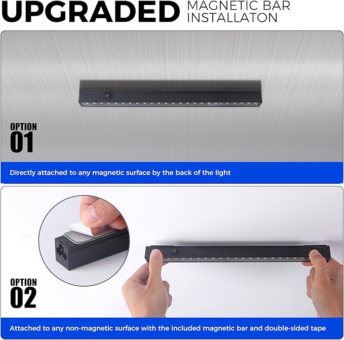 - Easy Installation: With included clips, cable ties, magnetic bar with double-sided tapes, you could install this indoor plant light by yourself in minutes. Our under cabinet grow lights can be directly attached to any magnetic surface and any non-magnetic surface. Plug and play, and you could link up to 16 lights in a series, saving your time