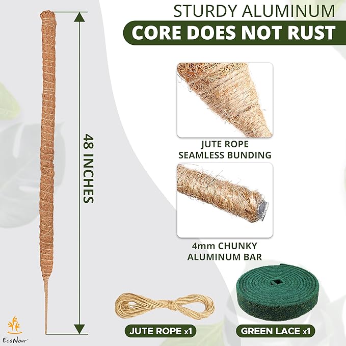 EcoNour Moss Pole for Plants – 48 inches | Monstera Plant Support for Plant Climbing and Growth | Elevate Your Indoor Garden, Plant Support for Indoor Potted Plants to Grow Upwards