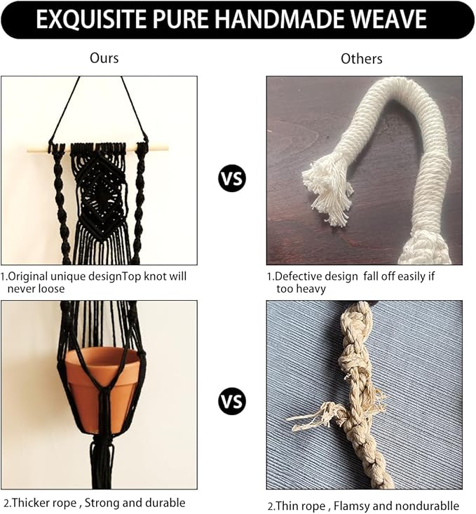 - HANDMADE WEAVING CRAFT - Hanging plant holders made from eco-friendly recycled cotton rope and wooded ring, It has a strong flexible woven design, sturdy and durable, accommodates planters of all shapes and sizes, you can take them home for your plants with confidence
