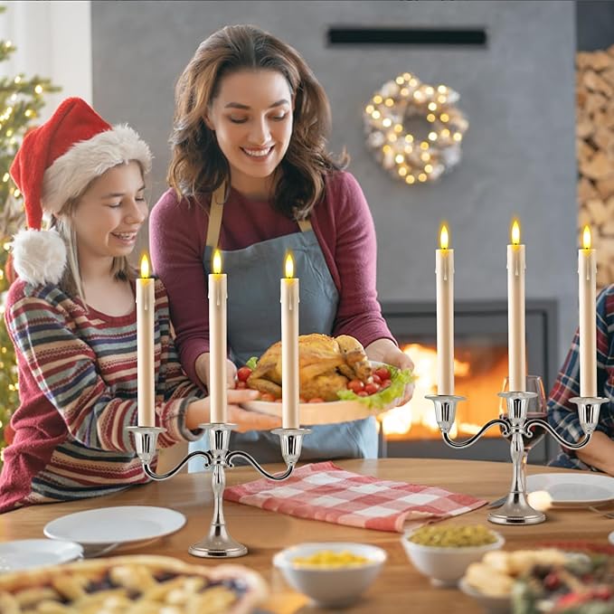 - Realistic LED Flickering Flameless Taper Candles: These taper candles are made of real wax, 3D wick and realistic flickering light that feels and looks like a real wax candle dancing in the wind. Warm light creates a romantic atmosphere when using as dinner, party, wedding, birthday, Christmas home decoration.