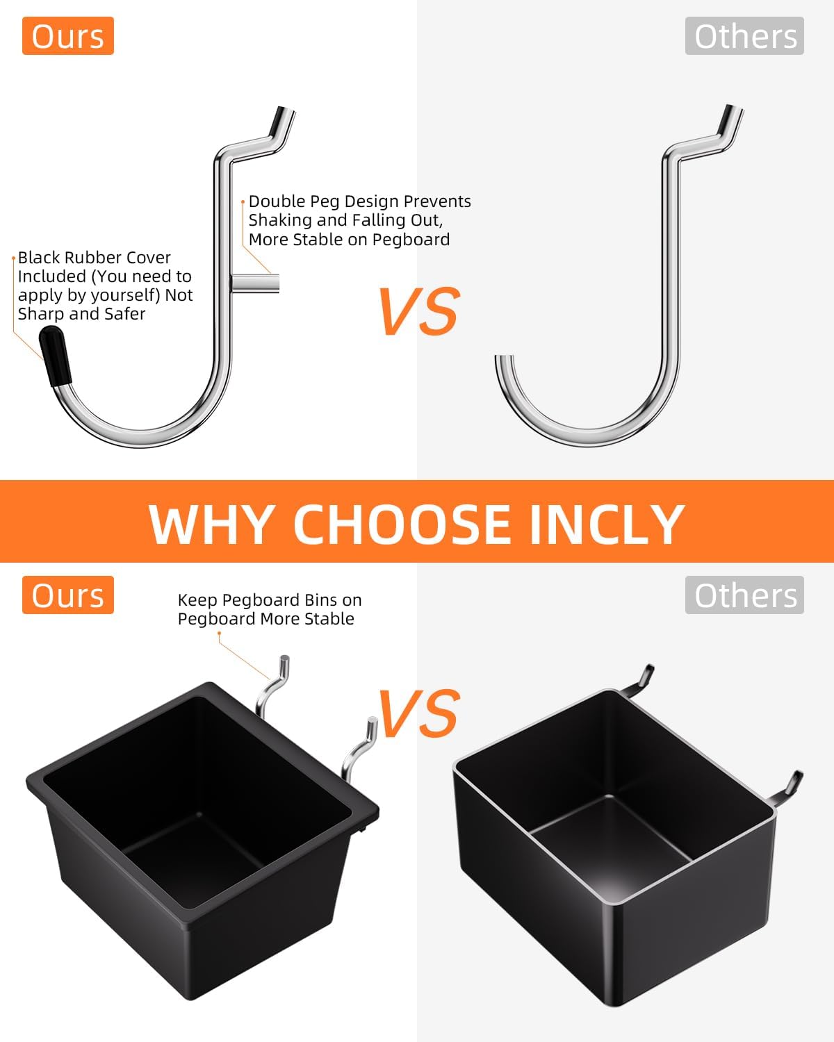 - PEG BOARD TOOL HANGERS: The peg board hooks are made of hardened steel construction, corrosion-resistant chrome plating finish to provide maximum strength, resist rust and corrosion. Ensures long lasting durability
