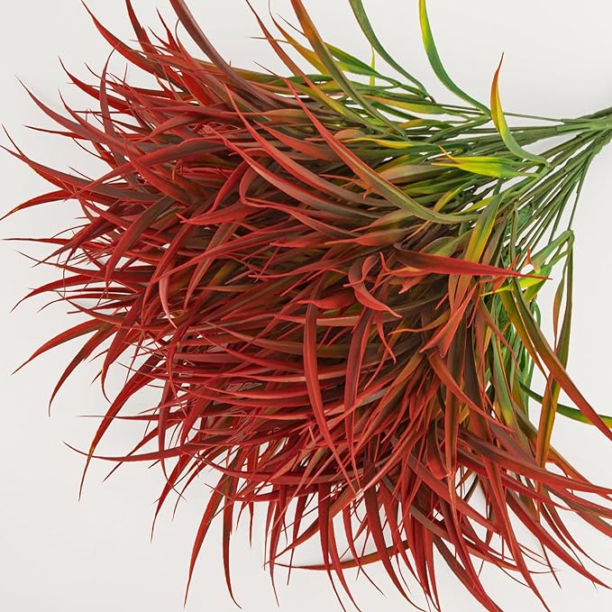Ouddy Decor 16 Bundles Artificial Plants Outdoor Fake Grass Greenery Stems UV Resistant Faux Plastic Plants Shrubs for Autumn Home Garden Pathway Farmhouse Front Porch Harvest Thanksgiving Decor, Red