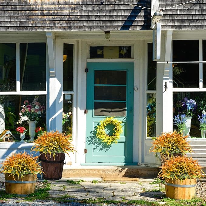 - Natural & Real Looking: The upgraded faux plants outdoor whether indoors or outdoors, can exhibit a similar appearance to real natural plants. This artificial grass can inject green and vitality into your room or garden, creating a comfortable atmosphere that allows you to relax.