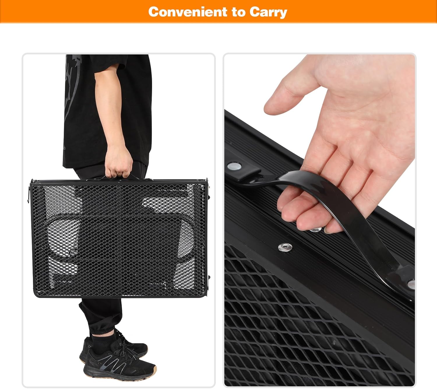 - [Lightweight and Portable] This black outdoor grill stand table weights only 9.8lbs. Its compact size makes it easy to store. It also can be set up in several seconds, convenient for you to take or transport because of carry handle.
