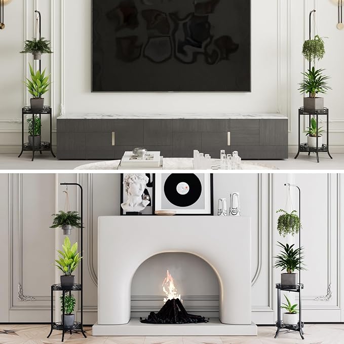 - Space-Saving Design: This iron hanging basket plant stand is thoughtfully designed to save space, making it suitable for small areas like living rooms, bedrooms, hallways, and corners
