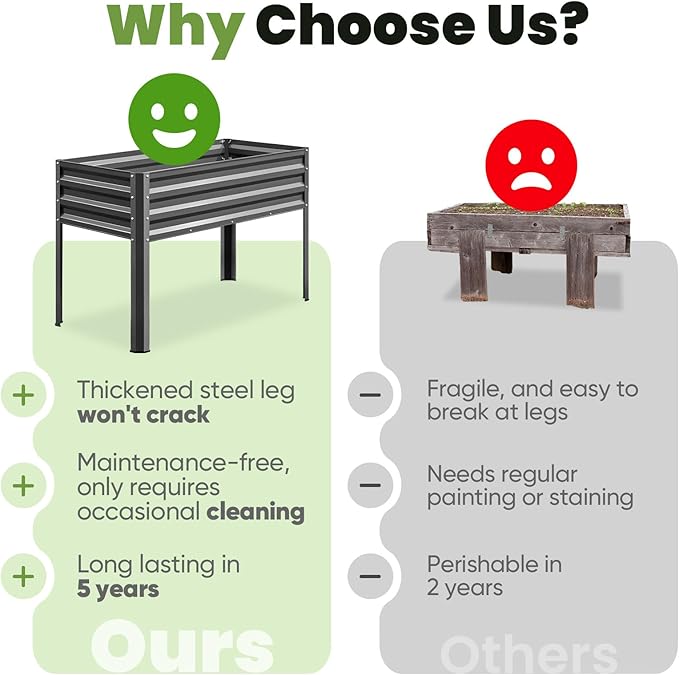 - 【Effortless Drainage】Ample drainage holes allow plant roots to breathe and drain properly. Comes with a non-woven fabric liner to ensure efficient drainage while containing soil, enabling worry-free indoor and outdoor use. The elevated garden bed is ideal for garden, backyard, balcony, and deck.
