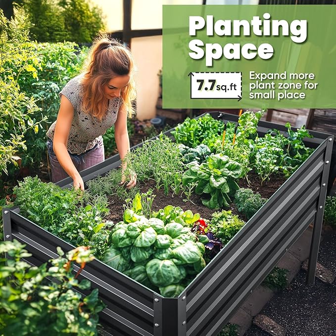 - 【Sturdy & Durable, Capacity: 400 lbs】Our galvanized steel planter raised bed is rust-resistant, sturdy, and can support up to 400 lbs. More durable than wooden raised garden bed kit, it ensures a longer lifespan without the worry of cracking or warping.