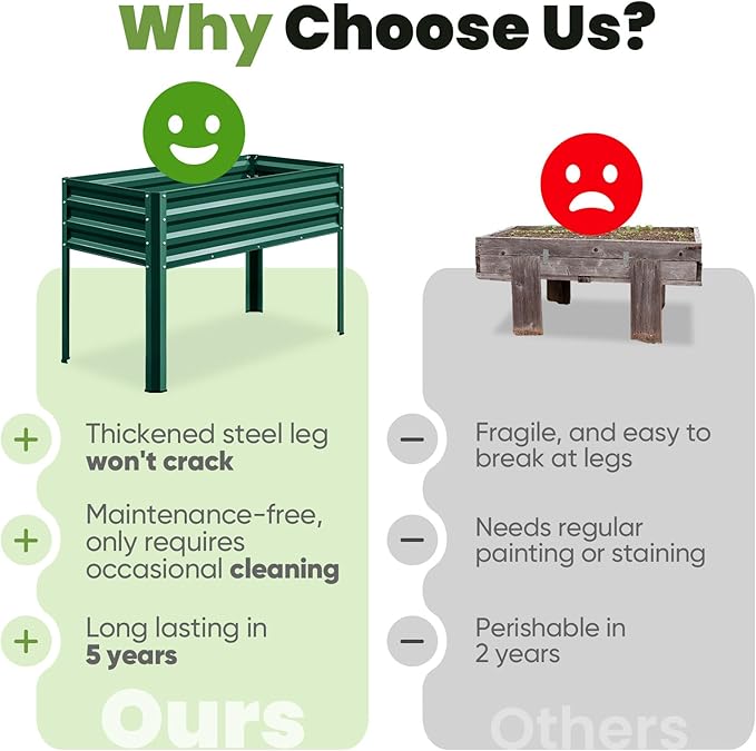 - 【Spacious Planting Space】Raised garden bed with legs dimensions: 48×24×30 IN, boasting a deep 11.8" raised planter box—way beyond the standard 8". With room for 50 gallons of soil, your veggies, fruits, herbs, and flowers will thrive.