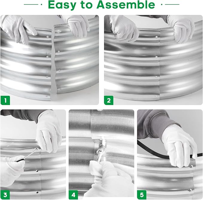 - What You Get: we have included Galvanized raised garden bed kit with detailed assembly instructions, rubber edge strips, safety gloves , wrench tools and with galvanized nuts and bolts in the box .These essential tools elevate your overall planting and gardening adventure.