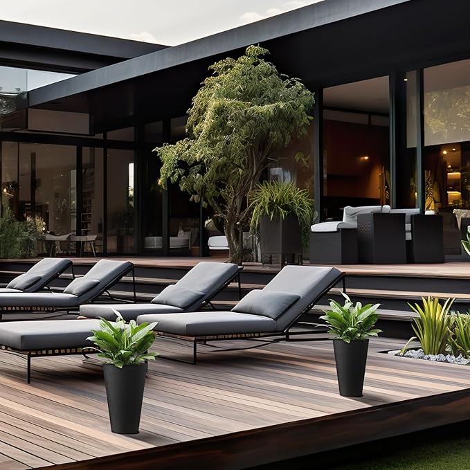 - Minimalist Chic - Elevate your space with these tall and wide planters, embodying sleek lines and a contemporary black finishโa defining trend in modern landscape design. The textured surface introduces an artistic touch to your garden, patio, office, living room, or front door area.
