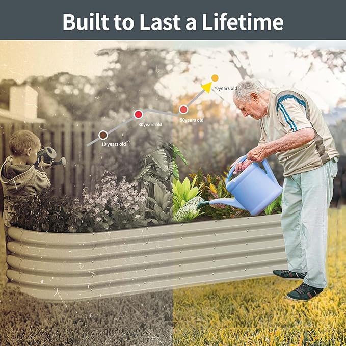- Easy to Assemble:Raised beds for gardening kit with detailed assembly instructions and gloves to get you assembled in just 30 minutes, complete with extra galvanized nuts and bolts.You can move it anywhere to assemble it or carry it to where you want.