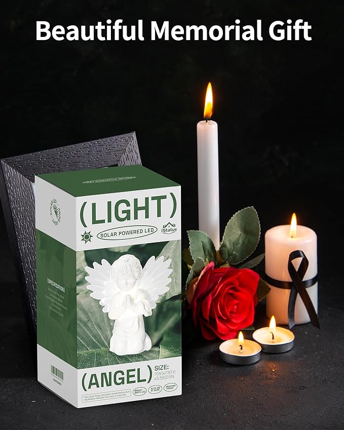 - ☀️ Solar Powered: Eco-friendly and cost-effective; Charges during the day (within 5-8 hours) and automatically illuminates the angel statue at night for 6-8 hours.