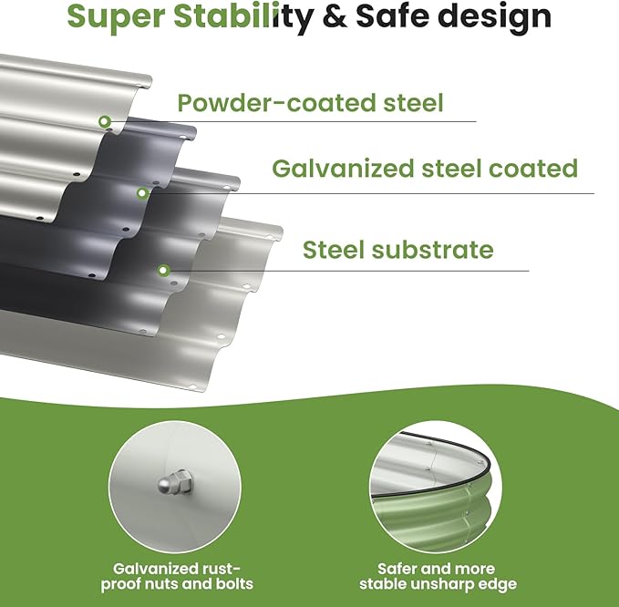 - Safety design: We offer a rubble seal to protected top edge of garden from being sharp. Environmentally friendly paint is used, which does not pollute the soil and provides a healthy growth environment for plants.