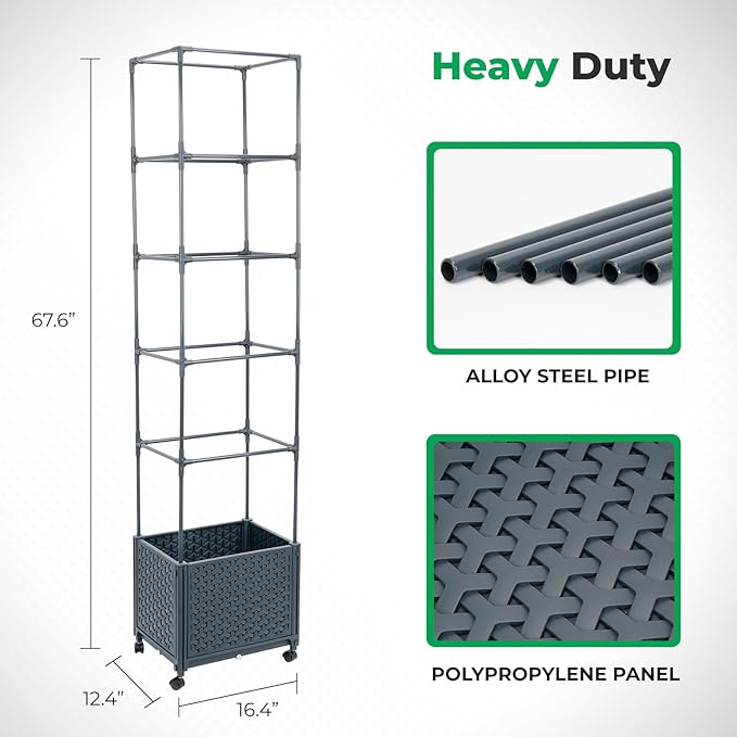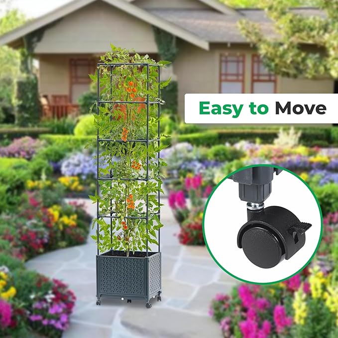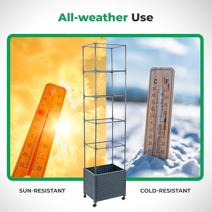 - HIGH QUALITY & DURABILITY: This tomato planter box is made from fade-proof and reinforced PP material, featuring a sturdy alloy steel trellis frame for minimal maintenance. It excels in all-weather conditions, from scorching summers to frigid winters, making it a versatile choice for outdoor plant decoration.