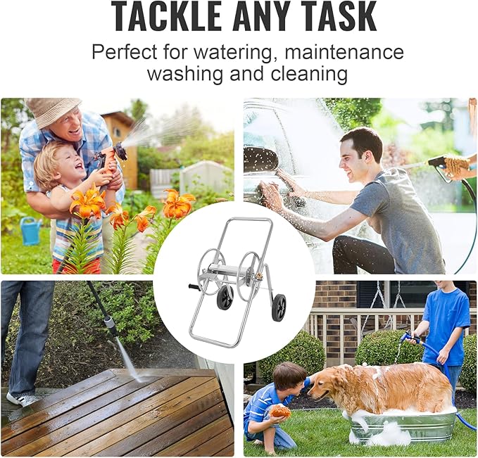 - Large Hose Capacity: Are you tired of coming up short? The hose reel cart can hold up to 175 ft of 5/8’’ hose (hose not included), allowing you to reach various corners of your garden, backyard, or other areas without any limitations.