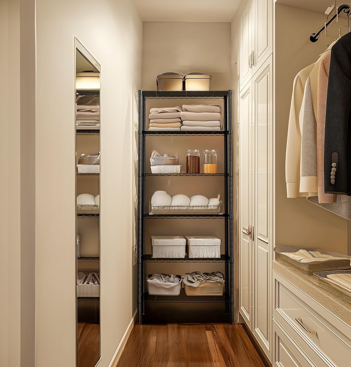 - OUR SERVICE - Your satisfaction is our pursuit, we provide smart device for you to easily prevent rack from falling down. Any problem you can contact us and 100% money back for any reason you are unsatisfied with Finnhomy 6 shelves rack.