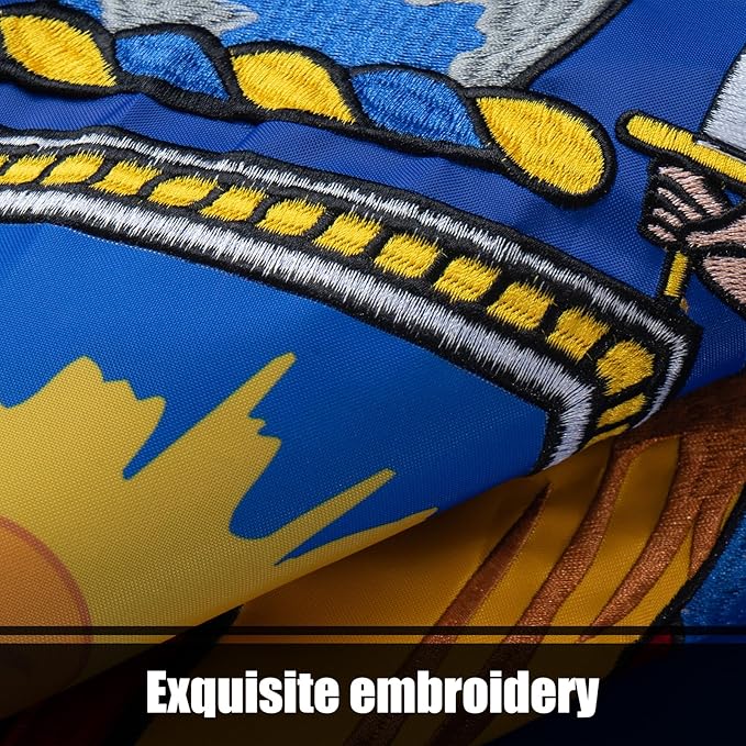 - 【HIGH QUALITY EMBROIDERY】The New York Flags 4x6 foot Coat of Arms is visible from front and back,and we embroider it with beautiful and tough threads. The embroidered NY flag will catch everyone's eyes when display.