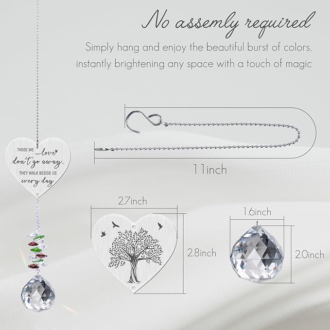 - Sorry for Your Loss Gifts: The memorial crystal suncatcher we bring to you are not just a decoration, they are an eternal companionship, a love that never fades away, they are also a kind of spiritual comfort and emotional expression, and they are an eternal love.