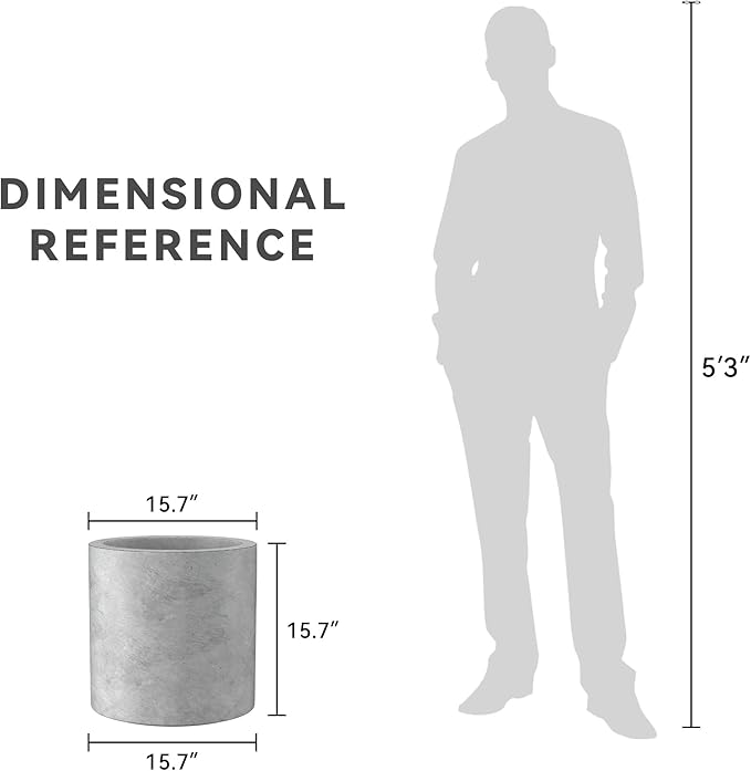 Kante 15.7" Dia Round Concrete Planter, Modern Style Large Cylindrical Plant Pot with Drainage Hole and Rubber Plug for Indoor Outdoor Patio, Natural Concrete