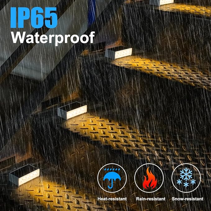 - 【Water & Pressure Resistant】Outdoor step light with ABS shell is tough and durable, light weight. IP65 waterproof rating means that stair light will not be damaged even if bad weather. Warm white step light not only can brighten up your stair. As a front porch or patio decoration, fence lights, deck plywood lights, also makes a very cool and ideal gift for loved ones, housewarming and gardening events.