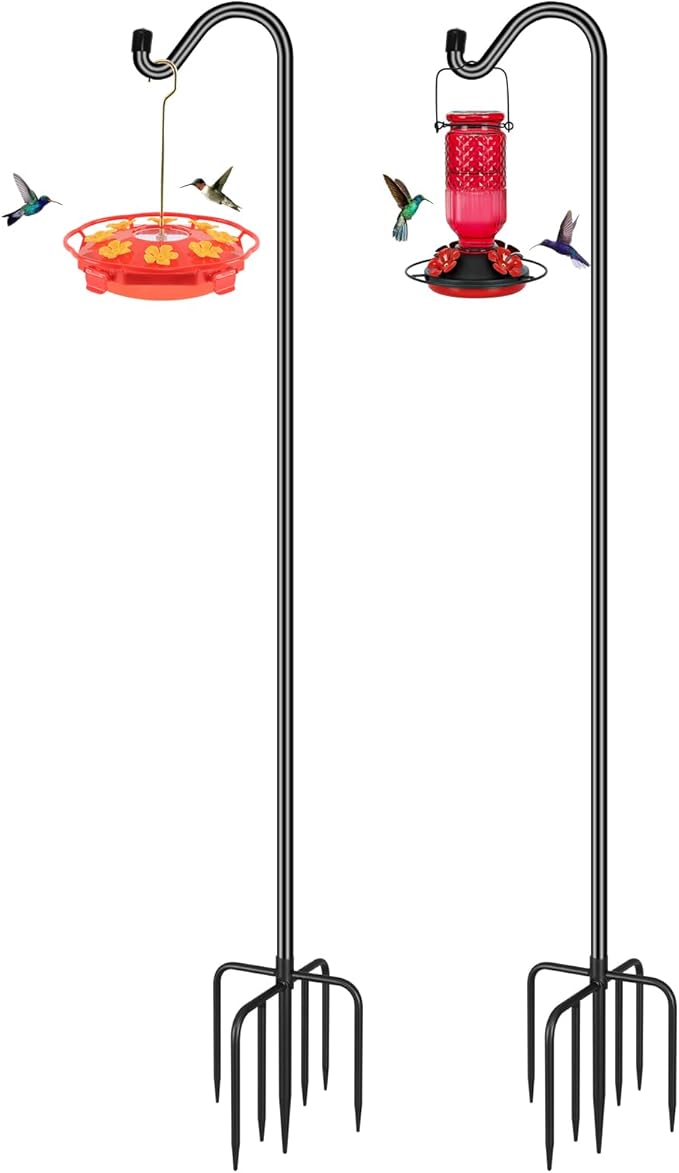 - 【UPGRADE 7 BASE PRONGS】: The unique 7 prongs design of bottom enables the garden hanging stake to stand more firmly on the ground. Even in bad weather, the shepard hooks can still stand upright and is not easy to fall. Compared with ordinary 2 prongs products, it has higher stability and firmness.